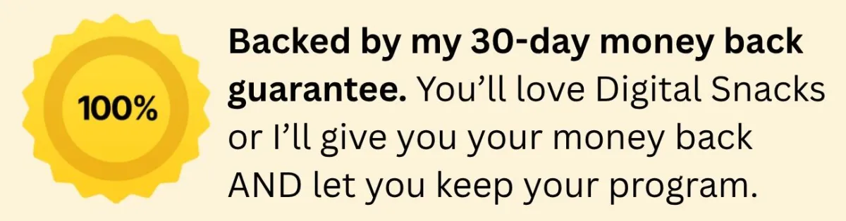 Digital Snacks isn't just a business strategy. It's freedom from the "guru business model" that's keeping you guessing where your next client is going to come from and one bad decision away from a corporate job.