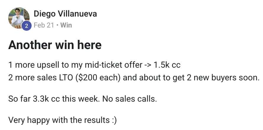 → Diego Villanueva makes $14k/mo (cash collected) selling a Digital Snack on how to improve your chess game